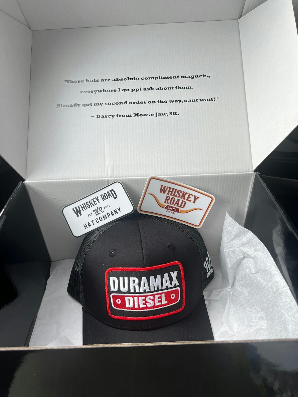 This is the first time I had ordered from Whisky Road Hat Conpany , I am beyond impressed with the presentation, the packaging, the delivery, the service, everything. I will certainly be ordering from them again. The quality of the merchandise as well as first class.